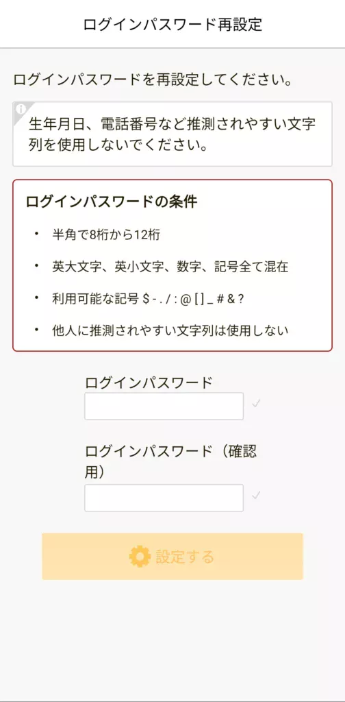 英大文字・英小文字・数字・記号すべて入れないといけないので、適当に設定して忘れそうで危険。